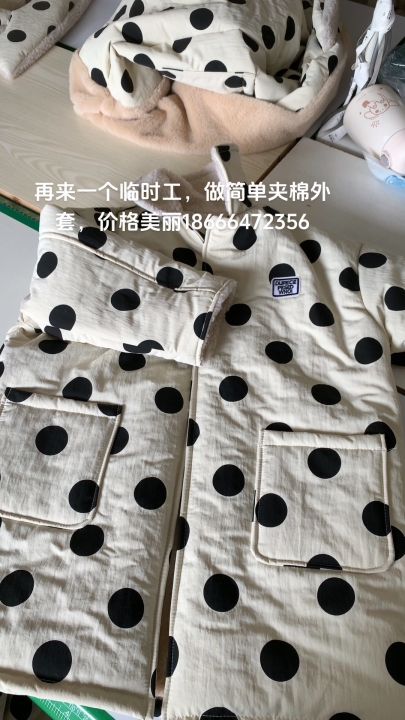 招夫妻对做简单夹棉外套,临时的也可以来,下机结账...